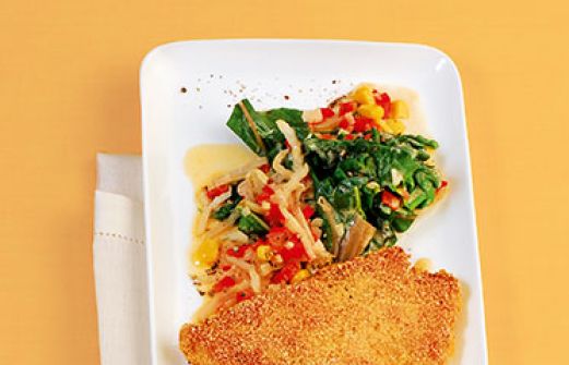Polenta-Fisch auf Mangoldgemüse Zutaten 600 g Mangold 1 rote Paprikaschote 1 Zwiebel 2 Knoblauchzehen 1 Dose Mais (140 g Abtropfgewicht) 600 g Seelachs- oder Rotbarschfilet Salz Pfeffer 2 Eier 100 g Polentagrieß 4 EL Olivenöl 200 ml Gemüsebrühe 150 g Crème fraîche [...]