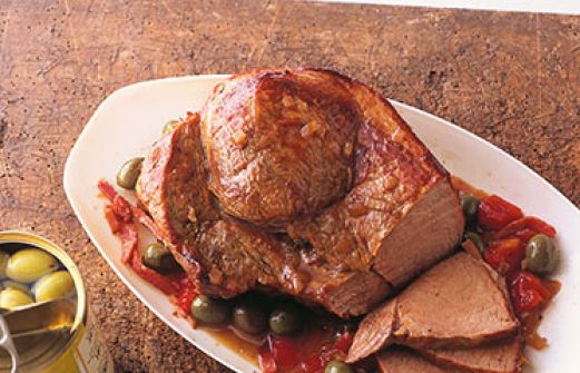 Kalbsbraten mit Oliven Zutaten 1 Zwiebel 1 Möhre 2 reife Tomaten 1,2 kg Kalbsnuss Salz 50 g Schweineschmalz (ersatzweise 4 EL Olivenöl) 150 ml trockener Weißwein ¼ l Kalbsfond (aus dem Glas; ersatzweise Instant-Gemüsebrühe) 1 dicke Scheibe Serranoschinken 150 g milde grüne Ol [...]
