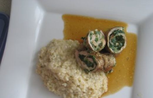 Zutaten für Personen Rezept mit Bild: Involtini mit Estragon Risotto Bild einstellen Involtini 8 Stk. Kalbsschnitzel, ca 80gr schwer, flach geklopft Salz, Pfeffer 100 gr Mascarpone 100 gr Blattspinat geg [...]