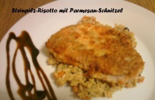 Zutaten für Personen Rezept mit Bild: Steinpilz-Risotto mit Parmesan-Schnitzel Bild einstellen 150 gr Reis 1 EL Steinpilz-Fix 500 ml Gemüsebrühe 200 ml Weißwein trocken Salz , Pfeffer 1 Karot [...]