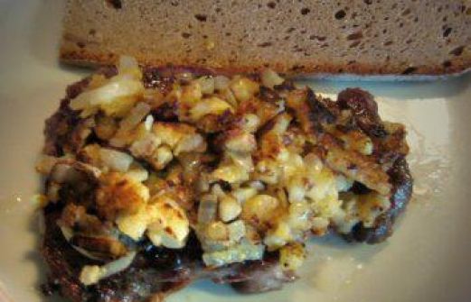 Zutaten für Personen Rezept mit Bild: Rindersteak mit Senfzwiebeln Bild einstellen 150 g Rumpsteak o. Hüftsteak 1 Zwiebel gewürfelt Mehl Senf mittelscharf Pfeffer aus der Mühle, Salz, Fett zum Bra [...]
