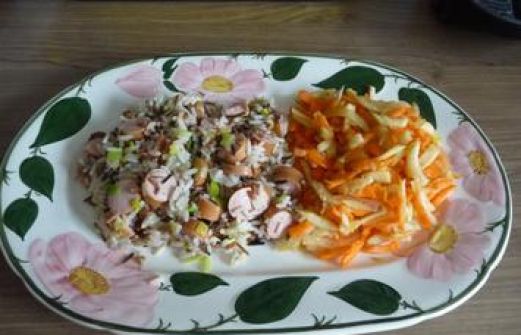 Zutaten für Personen Rezept mit Bild: Unter 30 Minuten : Reis - Würstchen - Pfanne mit Apfel - Möhren - Salat Bild einstellen 0.5 Stange Porree frisch geschnitten 4 Stück Wiener Würstchen geschnitten 300 gr [...]