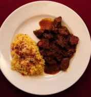 Zutaten für Personen Bild einstellen 750 Gramm Zwiebeln 2 Esslöffel Butter oder Schmalz 750 Gramm Rindfleisch, in Wuerfel geschnitten, Pfeffer 2 Esslöffel Rosenpaprika 1 Esslöffel Tomatenmark 0.25 Liter Heisses Wasser Mehl und S [...]