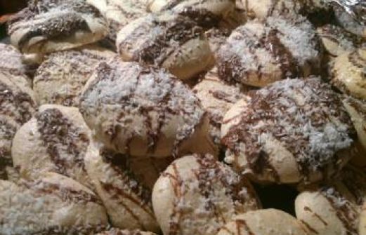Zutaten für Personen Rezept mit Bild: Baiser Schoko-Kokos Kekse Bild einstellen 6 Eiweiße 350 gr Zucker 1 Prise Salz 100 gr Kuvertüre dunkel 150 gr Kokosflocken Rezept Zubereitung Baiser S [...]