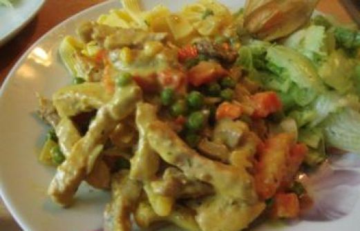 Zutaten für Personen Rezept mit Bild: Geschnetzeltes mit buntem Gemüse in Käsecurryahmsoße Bild einstellen 400 Gramm Schweinegeschnetzeltes Salz und Pfeffer Paprikapulver scharf Cumin 1 Zwiebe [...]