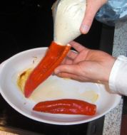 Zutaten für Personen Rezept mit Bild: Gefüllte Spitzpaprika mit Käsewürstchen und Tomatensoße Bild einstellen 3 Rote Extra Lange Spitzpaprika 3 Käsewiener Frischkäse mit Chili-Pprika 2 Kl. Dosen Pizzatom [...]