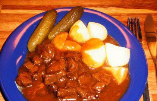 Zutaten für Personen Bild einstellen 1000 gr. Rindergulasch 2 große Zwiebeln 2 Rindfleischsuppe Brühwürfel Salz, Pfeffer etwas Öl zum Braten Soßenbinder dunkel Rezept Zubereitung Rindergulasch nach gut bürgerl [...]