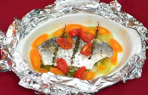 Zutaten für Personen Bild einstellen 5 Wolfsbarschfilets à ca. 150 g 50 g Butter Knoblauchzehen, geschält und in dünne Scheiben geschnitten frische Zweige Thymian Spitzpaprika Staudensellerie Fingermöhren Frü [...]