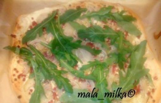 Zutaten für Personen Rezept mit Bild: Flammkuchen mit Rucola Bild einstellen 200 g Mehl 3 EL Olivenöl 125 ml Wasser 0.5 Päckchen Trockenhefe 200 g Schmand Salz Pfeffer 2 klein Zwiebe [...]