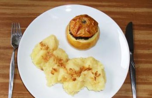 Zutaten für Personen Rezept mit Bild: Bratapfel "Himmel und Erde" Bild einstellen 4 große Äpfel 1 Zwiebel 400 g Blutwurst Majoran, gerebbelt 0.5 Bund Petersilie Butter Wasser/ Apfelsaft [...]
