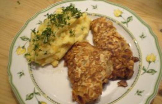 Zutaten für Personen Bild einstellen 800 g Kartoffeln 400 g Karotten 1 l Gemüsebrühe 4 Rotbarschfilet à ca. 150 g Salz, Pfeffer 4 EL Mehl 1 Ei Größe M etwas Sahne zum Kochen 60 g Mandelblättchen 2 EL Spei [...]
