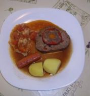 Zutaten für Personen Rezept mit Bild: Falscher Hase Bild einstellen 1 kg Hackfleisch gemischt 1 Zwiebel 2 Knoblauchzehen Erbsen - gefroren - 3 hartgekochte Eier Rezept Zubereitung Falscher [...]