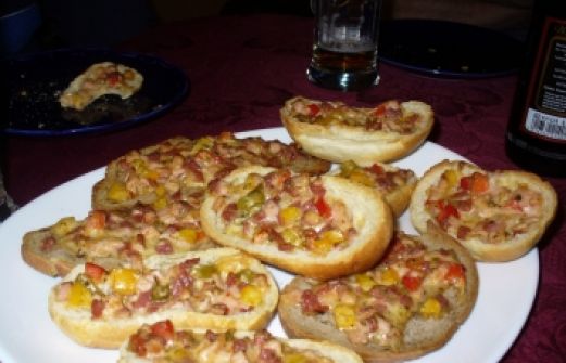 Zutaten für Personen Rezept mit Bild: Pizzabrötchen Bild einstellen 2 Packungen Salami 2 Packungen Schinkenwurst 500 Gramm Reibekäse 2 Paprika 4 Tomaten 2 Becher süsse Sahne Schnittlauch tiefgefro [...]