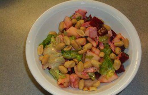 Zutaten für Personen Rezept mit Bild: Salate: Apfel-Rote Bete-Salat Bild einstellen 1 Roter Apfel 1 Grüner Apfel 200 Gramm Gekochte Rote Bete 1 Kleiner Kopfsalat 150 Gramm Geräucherte Putenbrust 1 Tütc [...]