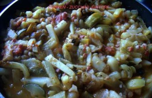 Zutaten für Personen Rezept mit Bild: GURKEN - ZUCCHINI - EINTOPF Bild einstellen 700 g Gurken frisch 700 g Zucchini frisch 500 g Kartoffeln 4 Fleischtomaten frisch 1 Gemüsezwiebel frisch 0.5 Chilischo [...]