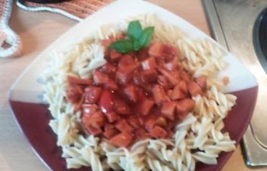 Zutaten für Personen Rezept mit Bild: Fusilli mit Fleischwurstsosse Bild einstellen 300 gramm Fusilli 1 Fleischwurst 2 Tomaten 2 Knoblauchzehen 1 Zwiebel 5 Esslöffel Tomatenketchup 2 cm Tomaten [...]