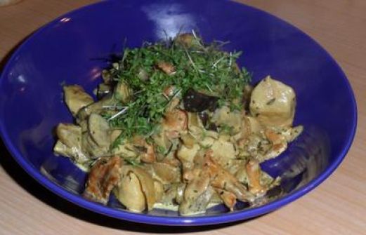 Zutaten für Personen Rezept mit Bild: Schnitzel-Gemüse-Pilz-Pfanne Bild einstellen 2 Putenschnitzel 1 Schale Pfifferlinge 1 Aubergine 1 Zwiebeln 2 Knoblauchzehen 1 EL Frischkäse 2 EL Crème fraî [...]