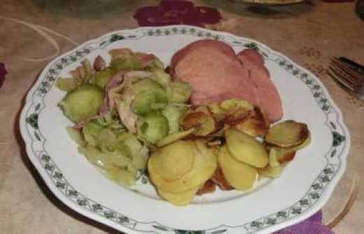 Zutaten für Personen Rezept mit Bild: Speck-Rosenkohl mit Rippchen Bild einstellen 3 gekochte Rippchen 750 g Rosenkohl 1 Zwiebel 150 g Baconstreifen 125 ml Brühe 2 EL Butter 1 TL Knoblauchg [...]