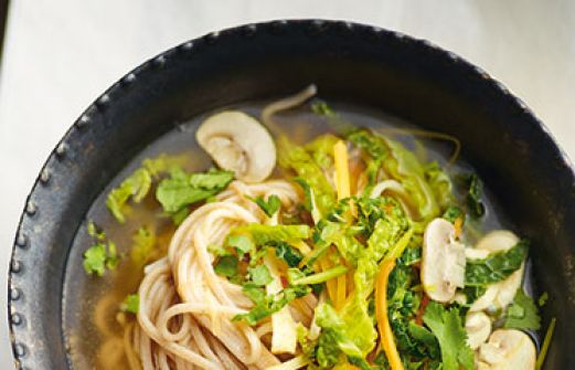 Sobanudelsuppe mit Gemüse und Wasabi Zutaten 1 Möhre 1 Stück Steckrübe (ca. 150 g) 1 Pastinake 1 Stück Lauch (ca. 100 g) 2 Wirsingblätter 100 g Champignons 1 Stück Ingwer (ca. 2 cm) 200 g Buchweizennudeln (Soba) Salz 1 l Gemüsebrühe 4 EL Sojasauce ca. 2 TL Wasabipaste [...]