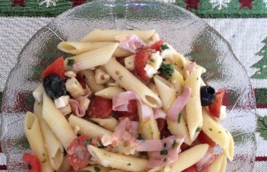Italienischer Nudelsalat Zutaten 1,5 l Brühe (Instant) 250 g Nudeln 250 g Kirschtomaten 125 g Mozzarella-Käse 75 g ital. Mortadella 1 kleine Zwiebeln 1 Knoblauchzehe Petersilie Basilikum 4 EL Weißwein-Essig Salz Pfeffer weiß 1 TL Zucker 3 EL Olivenöl 50 g Oliven schwar [...]