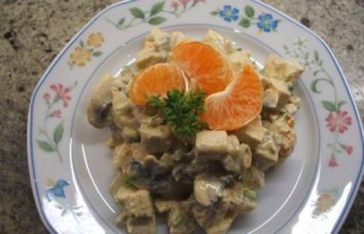 Zutaten für Personen Rezept mit Bild: Salate: Fruchtiger Geflügelsalat Bild einstellen 250 Gramm Hähnchenbrust frisch 2 Stück Frühlingszwiebel 1 Stück Apfel 2 Stück Mandarinen frisch 6 Stück Champignons [...]