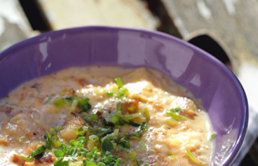 Lauch-Käse-Suppe mit Brot Zutaten 1 dicke Stange Lauch 150 g altbackenes Weißbrot (vom Vortag) 250 g würziger Hartkäse (z. B. Appenzeller oder Greyerzer) 2 Knoblauchzehen 1 TL getrockneter Majoran 2 TL Kümmelsamen (wer mag) 2 EL Butter 1 l Gemüse- oder Fleischbrühe Salz Pf [...]
