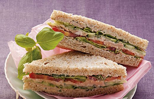 Tramezzini mit Thunfisch Zutaten 150 g Thunfischfilets im eigenen Saft (aus Dose oder Glas) 1 Zweig Basilikum (oder Petersilie) 2 EL Magerquark 1 TL Zitronensaft Salz Pfeffer aus der Mühle 1 kleine Tomate 1 Stück Salatgurke (ca. 40 g) 2 kleine Salatblätter 4 Scheiben Vollk [...]