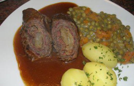 Zutaten für Personen Rezept mit Bild: Rind/Schwein: RINDER - ROULADEN Bild einstellen 3 Stk Rinderrouladen 6 Sch. Schwarzwälder Schinken 3 EL (gestrichen) Senf mittelscharf 3 Stk. Zwiebel frisch 2 Stk. Fl [...]