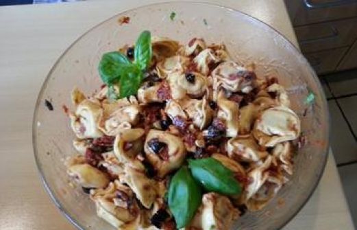 Zutaten für Personen Rezept mit Bild: Tortellini-Salat Bild einstellen 800 Gramm Tortellini gefüllt mit Fleisch 280 Gramm Getrocknete Tomaten in Öl 80 Gramm Oliven schwarz entsteint 60 Gramm Mozzarella 4 Es [...]