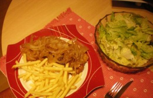 Zutaten für Personen Rezept mit Bild: Zwiebelschnitzel mit Pommes und Salat Bild einstellen 2 Stück Schweineschnitzel 1 Stück Ei Salz, Pfeffer, Mehl und Paniermehl 2 Stück Gemüsezwiebeln Öl zum Dün [...]