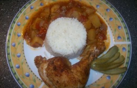 Zutaten für Personen Rezept mit Bild: Hähnchen geschmort Bild einstellen 1 Hähnchen grob zerteilt 2 Zwiebeln gehackt 5 Knoblauchzehen gehackt 2 Tomaten in Würfel 6 Kartoffeln fein gewürfelt 2 EL Toma [...]