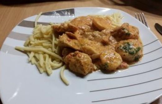 Zutaten für Personen Bild einstellen 500 gr Schweineschulter 4 Stk. Zwiebeln gehackt 1 Dose Tomaten gehackt 2 El Öl Salz Zucker 1 TL Curry Muskatnuss 100 gr Crème fraîche Petersilie gehackt 4 Stk. [...]