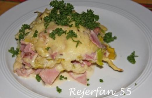 Zutaten für Personen Rezept mit Bild: Spätzle-Porree-Auflauf Bild einstellen 2 Stangen Porree 1 Zwiebel 1 TL Butterschmalz 100 ml Milch 50 ml Gemüsebrühe 100 g Sahneschmelzkäse 500 g Spätzle ge [...]