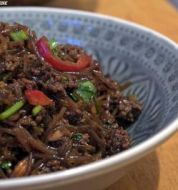 Zutaten für Personen Rezept mit Bild: Glasnudelsalat Bild einstellen 250 g Glasnudeln 1 Schalotte 1 Karotte 0.5 rote Paprika 3 TL Aglio alla arrabbiata ..sind kleine Knoblauchwürfelchen mit Tomaten Sc [...]