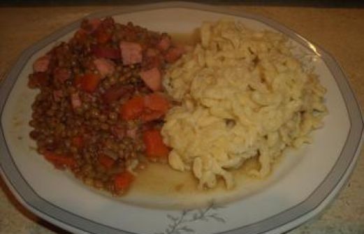 Zutaten für Personen Rezept mit Bild: Linsen mit Spätzle Bild einstellen 500 gr. Mehl 4 Eier 0.25 Liter Wasser 2 TL Salz Linsen 200 gr. Linsen 100 gr. Speck, gewürfelt 1 Karotte 0.75 Liter [...]
