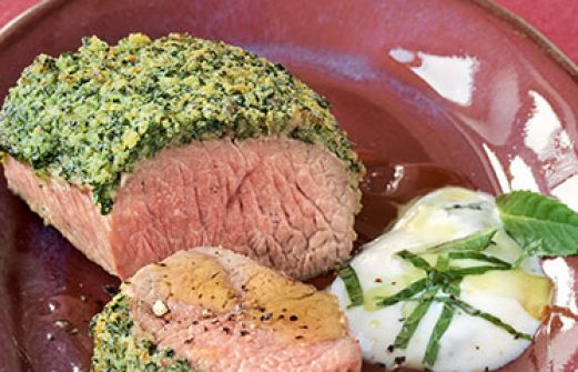 Lamm mit Zitronen-Kräuter-Kruste Zutaten ½ Bund Petersilie 6 Zweige Thymian 3 EL Butter abgeriebene Schale ½ Bio-Zitrone Salz Pfeffer 2-3 EL Semmelbrösel 300 g Lammlachse (Lammrückenfilet) 1 EL Olivenöl 100 g Joghurt 1 EL gehackte Minze Backpapier ½ Bund Peter [...]
