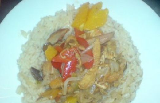 Zutaten für Personen Rezept mit Bild: Hähnchengeschnetzeltes mit Paprika und Orangen im Wok Bild einstellen 500 Gramm geschnetzelte Hähnchenbrust 1 Zwiebel frisch 1 Paprikaschote rot 1 Paprikaschote gelb [...]