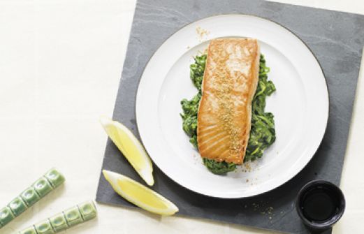 Lachs mit Spinat und Sesam Zutaten 600 g frischer Blattspinat (auch fein: 400 g aufgetauter TK-Blattspinat) Salz Lachsfi let (ohne Haut) 1 EL Sesamsamen 1/2 Bio-Zitrone 1 Knoblauchzehe 2 EL Butter Pfeffer Sojasauce zum Servieren 600 g frischer Blattspinat (auch f [...]