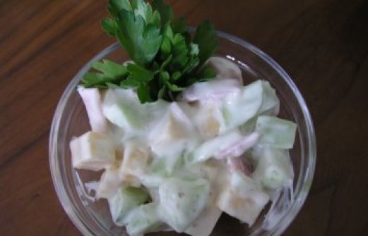 Zutaten für Personen Rezept mit Bild: Gurken-Schinken-Käse-Salat Bild einstellen 500 Gramm Salatgurke 150 Gramm Gekochter Schinken 150 Gramm Edamer Käse 150 Gramm Natur Joghurt 3 EL süße Sahne 1 TL [...]