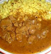 Zutaten für Personen Rezept mit Bild: Bierfleisch mit Gnocchi Bild einstellen 650 g Schwein Nacken ausgelöst Salz und Pfeffer Kümmel gemahlen 4 EL Mehl 4 EL Öl 1 Stk. Zwiebel rot 3 Stk. Knoblau [...]