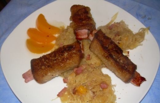 Zutaten für Personen Rezept mit Bild: Brot - Cannelloni Bild einstellen 6 Scheiben dünnes Schwarzbrot 6 fingerdicke Scheiben gekochten Schinken weiche Butter Brunch Butterschmalz zum ausbraten [...]