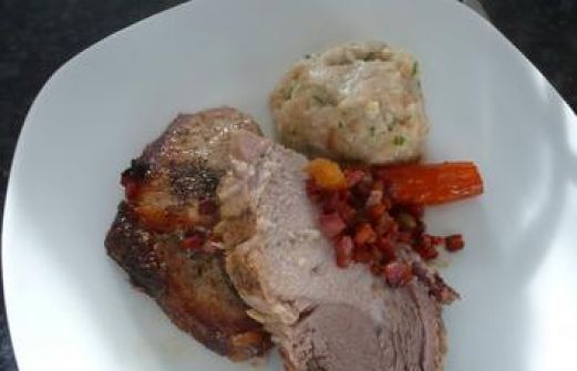 Zutaten für Personen Rezept mit Bild: Schweinebraten Bild einstellen 1 kg Schwein Bratenfleisch frisch in diesem Fall Kammfleisch 3 Scheiben Schwein Speck durchwachsen roh geräuchert je halben cm dic [...]