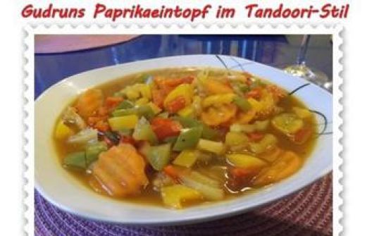 Zutaten für Personen Rezept mit Bild: Eintopf: Paprikaeintopf im Tandooristil Bild einstellen 0.5 L Wasser Das basische Gemüse: 1 große rote Spitzpaprika, gewürfelt 1 grünen Paprika, gewürfelt 1 g [...]