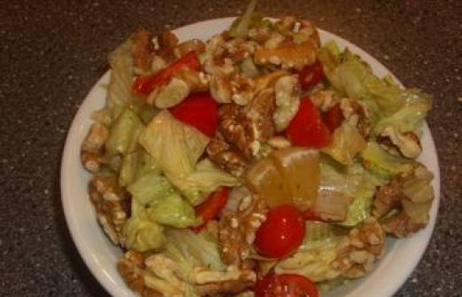 Zutaten für Personen Rezept mit Bild: Gemischter Salat mit Orangen und Walnüssen Bild einstellen 250 Gramm Cherrytomaten 0.5 Salatgurke 0.5 Eisbergsalat 0.5 Rote Paprikaschote 1 Zwiebel 1 Orange [...]