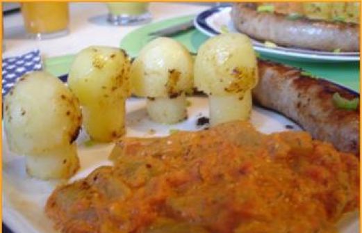 Zutaten für Personen Rezept mit Bild: Tomaten-Gurkengemüse mit Bratwurst und Kartoffelpilzen Bild einstellen 2 grobe/frische Bratwürste á 150 – 170 g 200 g Tomaten ( Enthäutet und grob gewürfelt ) 200 g [...]