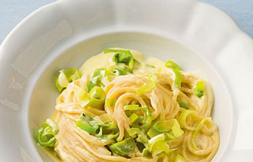 Spaghetti mit Lauch-Carbonara Zutaten 3 Knoblauchzehen 2 Stangen Lauch (ca. 500 g) 2 EL Butter 2 EL Olivenöl 500 g Spaghetti Salz 300 g Sahne 4 Eier (M) 8 EL frisch geriebener Pecorino Pfeffer frisch geriebene Muskatnuss 3 Knoblauchzehen , 2 Stangen Lauch [...]
