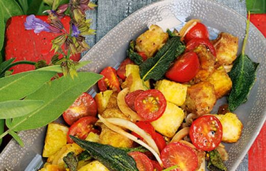 Salbei-Brot-Salat Zutaten 2 Händevoll frische Salbeiblätter (ca. 40 g) 200 g altbackenes Weißbrot 6 EL Olivenöl Salz Pfeffer 500 g Kirschtomaten 1 kleine Zwiebel 2 EL Aceto balsamico 30 g Parmesan 2 Händevoll frische Salbeiblätter (ca. 40 g) , 200 g altbackenes [...]