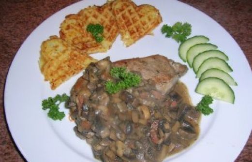 Zutaten für Personen Rezept mit Bild: Jägerschnitzel nach meiner Art mit Kartoffelwaffeln Bild einstellen 4 Stück Schweineschnitzel aus dem Rücken geschnitten Öl, Salz, Pfeffer 200 gr frische Champignons 2 [...]