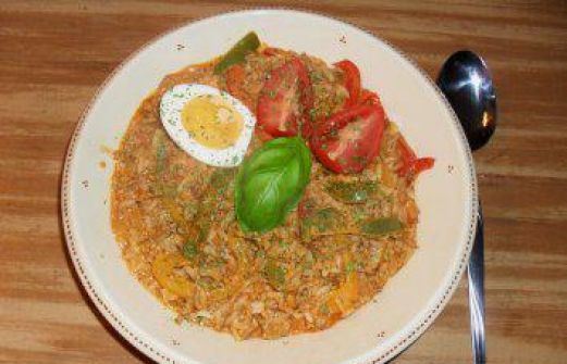 Zutaten für Personen Rezept mit Bild: Reispfanne "Ruck-Zuck" Bild einstellen 500 g Gehacktes 1 rote Paprika 1 gelbe Paprika 1 grüne Paprika 150 g Schmelzkäse 2 Tassen Reis 4 Tassen Wasser Salz [...]