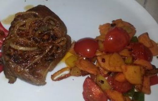 Zutaten für Personen Rezept mit Bild: Rumpsteak mit buntem Gemüse Bild einstellen 2 Rumpsteak je ca. 200 g 4 Stück Zwiebeln 2 Stück Süßkartoffeln 4 Stück Kartoffeln 1 rote Paprika 0.5 grüne Paprika [...]